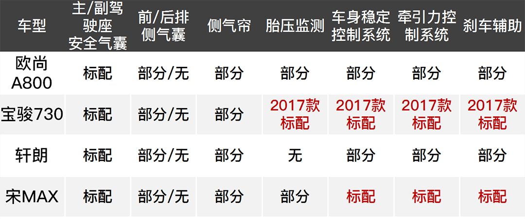 家用MPV的买家经常都是载着一家好几口人出行,此时安全就变得极为重要。由上表可以看到,宝骏730是这四款车中做得最好的,许多安全配置都是全系标配。像胎压监测这种装备,在不少国家都是法律强制要求必须要有,可见其重要性。而ESP虽然平时不太能察觉到它工作,但是在紧急变线时,分分钟能救你一命。