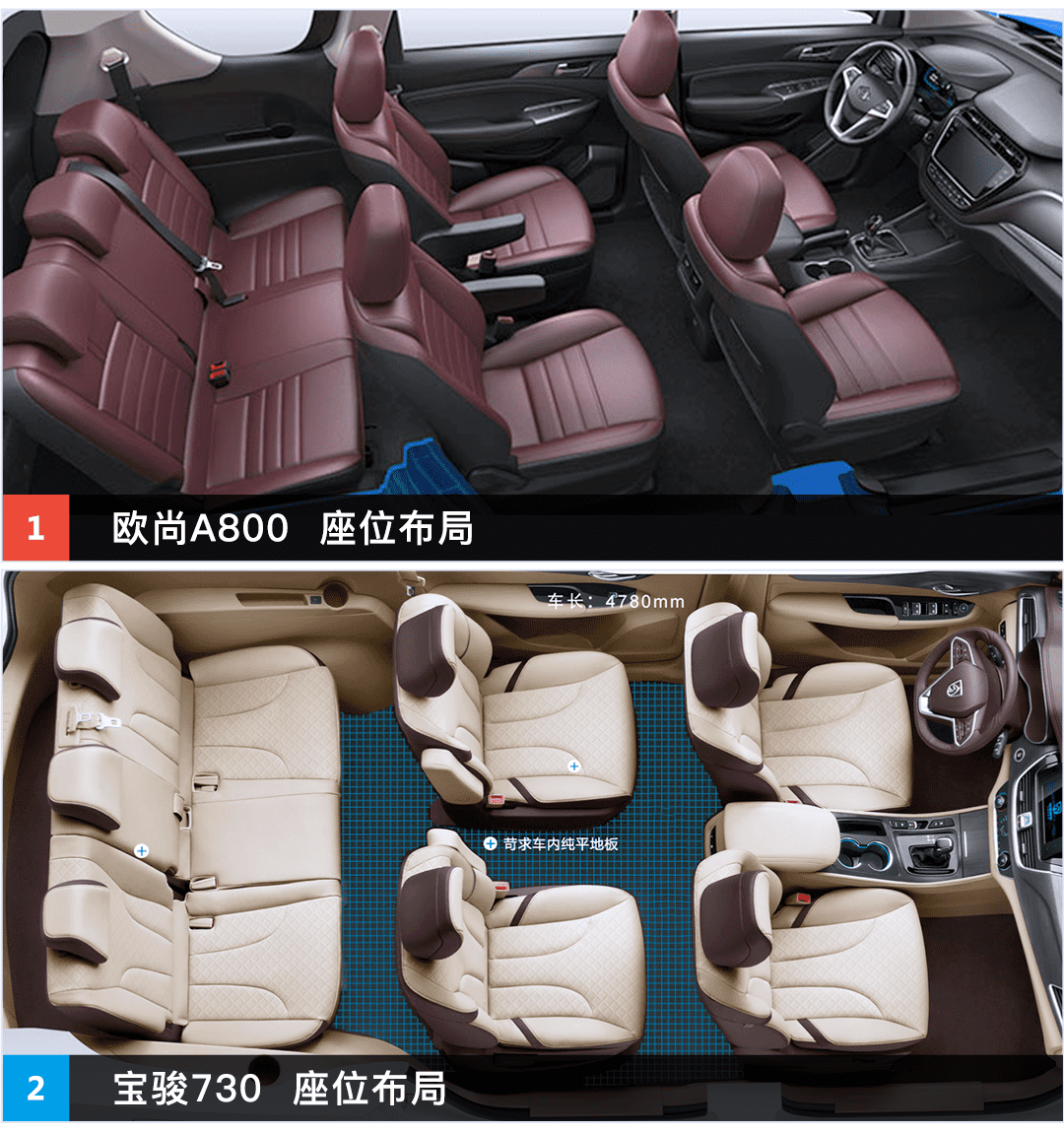 宝骏730与欧尚A800均是采用223的座椅布局,进出十分方便。但是欧尚A800有一个极为致命的缺陷,那就是座椅的吸热能力确实太强悍了。只要在天气好的情况下把车露天停一会再坐回去,真能烫到马上弹起来,坐久点很容易蛋都熟。