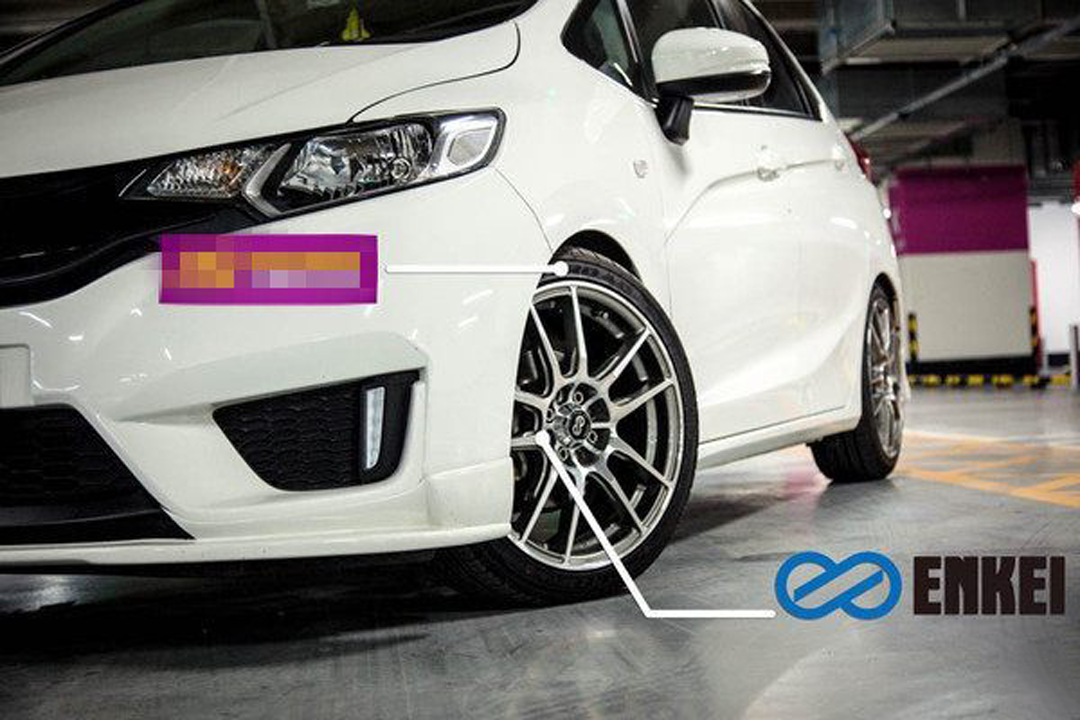 车主此番采用的轮毂是日本的Enkei FLC-01,但并不是JDM产品。FLC-01是4*100 or 114.3 的双孔距设计,外形有点像Enkei的PF01。