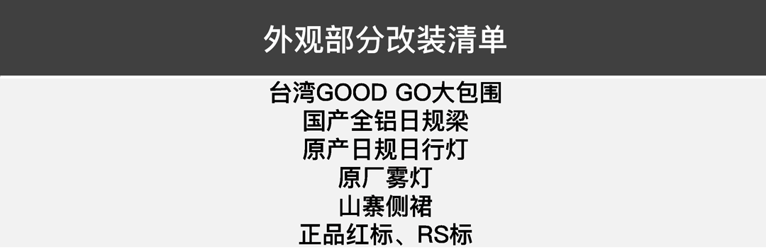 然而正规的JDM改装还是颇为费钱的,6000多块也只能买到一套前后杠加侧裙。于是这位车主选择了国内的Garage Vary,质量和仿真度都表现不错。后杠装饰上用的则是Nobless,还有一对仿FIT RS的后杠包角。