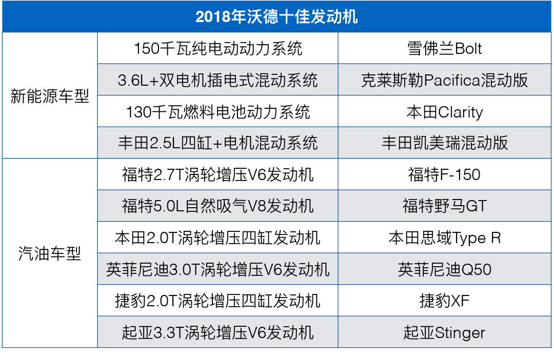看一下2018年的榜单我们发现,混合动力发动机的入选的发动机比例对比去年榜单有所增加,且这次的入选榜单里,并没有德系车型发动机,所以接下来教授将着重解释一下这两点。