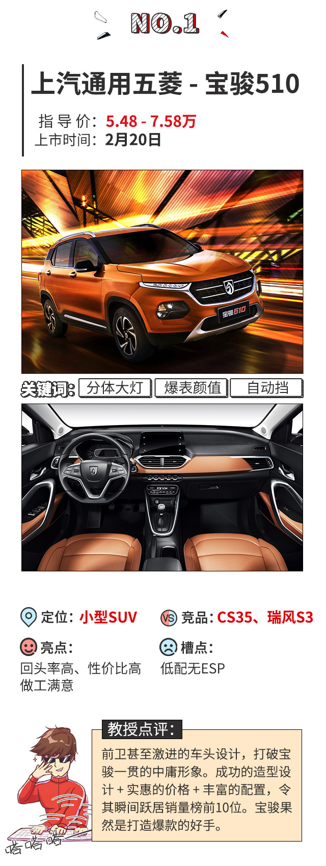上述10款SUV中,教授最喜欢星脉,对它的颜值设计毫无抵抗力。但回到现实,我觉得还是宝骏510最适合我。你们最喜欢哪一款呢?快来投票告诉大家吧!