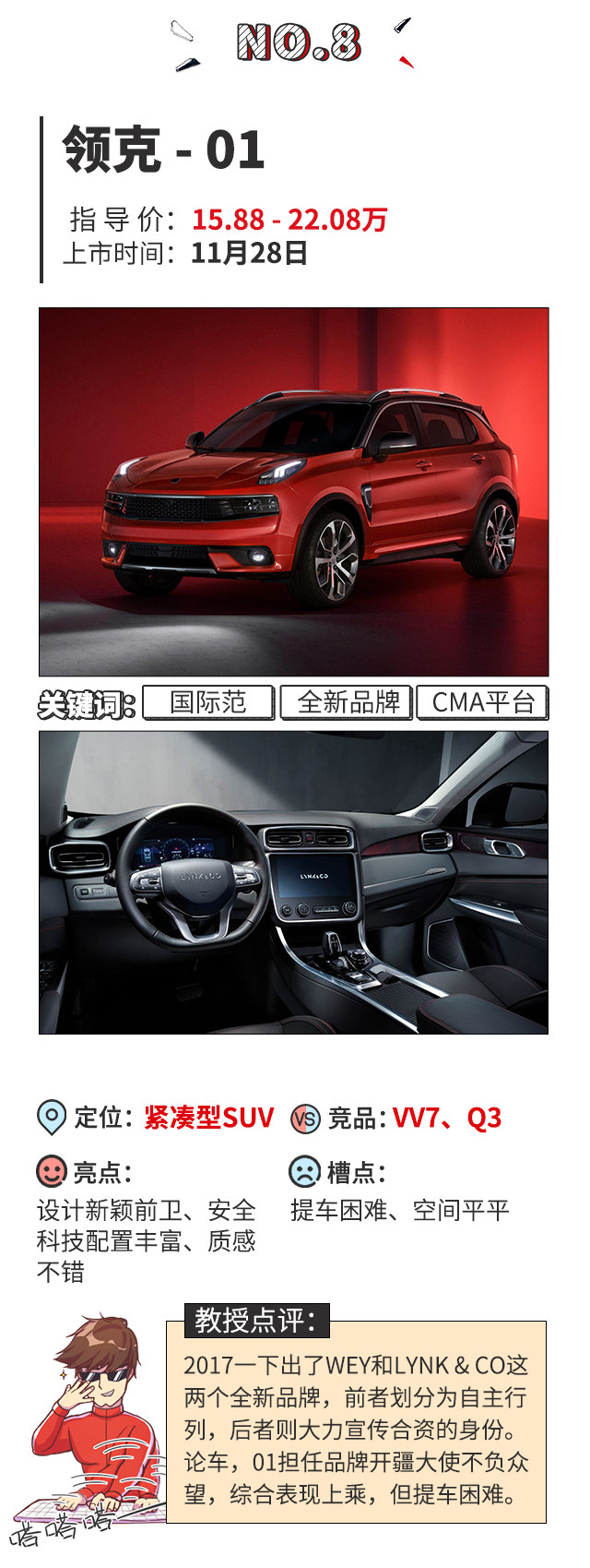 今天为大家带来的就是更重磅的年度十大SUV系列车型,相比轿车,教授相信这些SUV更受关注。欢迎大家今天继续积极参与文章下方的互动环节,我们依然有精美的新年小礼物奉送,话不多说,走起:
