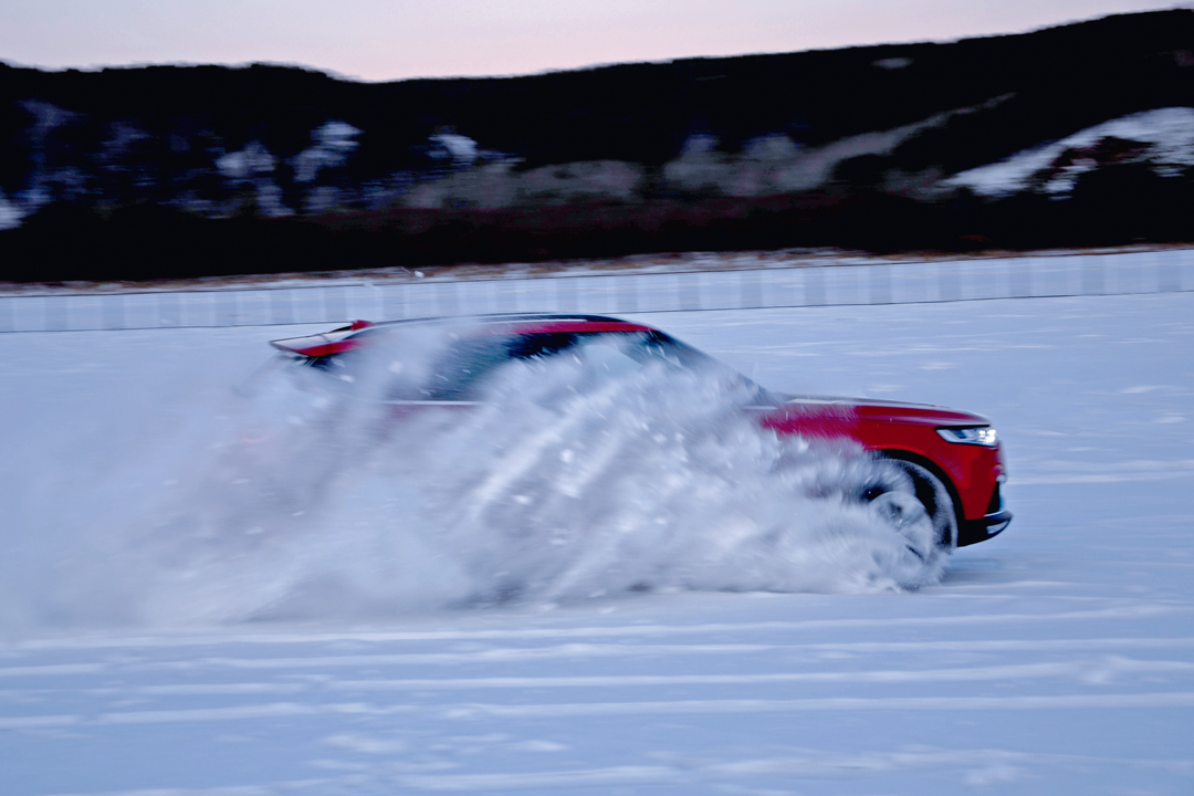 为了能让试驾车能在雪地、冰面稳健行驶,厂商还特地给试驾车辆换上了雪地钉胎,这会使得胎噪、路噪方面比常规情况下更加明显。