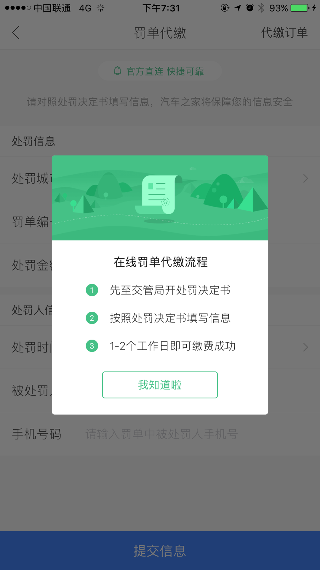 比如说汽车之家的罚单代缴