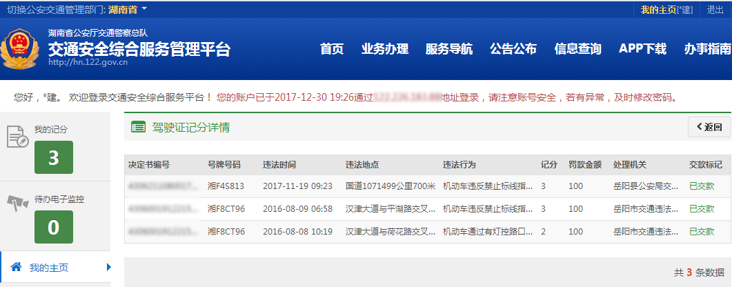 122.gov.cn的违章处理也十分快速高效(不用跑交通大队也不额外收服务费,黄牛都要失业了)