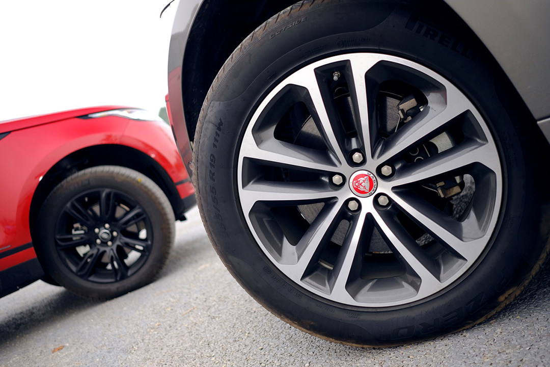 不过,先让我们把动力差距扔到一边,低下头来看看轮胎的区别。可以发现,路虎给揽胜星脉准备的是一套米其林Latitude Tour HP系列SUV专用的耐磨轮胎,其优势是具有非常优秀的耐用性和不错的舒适性;而转过头来看看捷豹F-Pace,19寸轮毂上装着的竟是倍耐力P ZERO系列高性能轮胎,单从轮胎角度来说,显然捷豹F-Pace的倍耐力P ZERO具有更强的运动性能。
