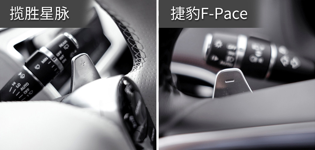 揽胜星脉与捷豹F-Pace都配备了换挡拨片,两者的使用感受也相当接近,但揽胜星脉的换挡拨片显然有着更好的质感。