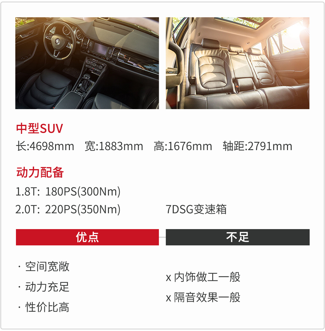 柯迪亚克与途观L同出自MQB平台,但是柯迪亚克还提供了7座布局,这对不少二胎家庭来说更具吸引力,乘坐空间也达到预期效果。
