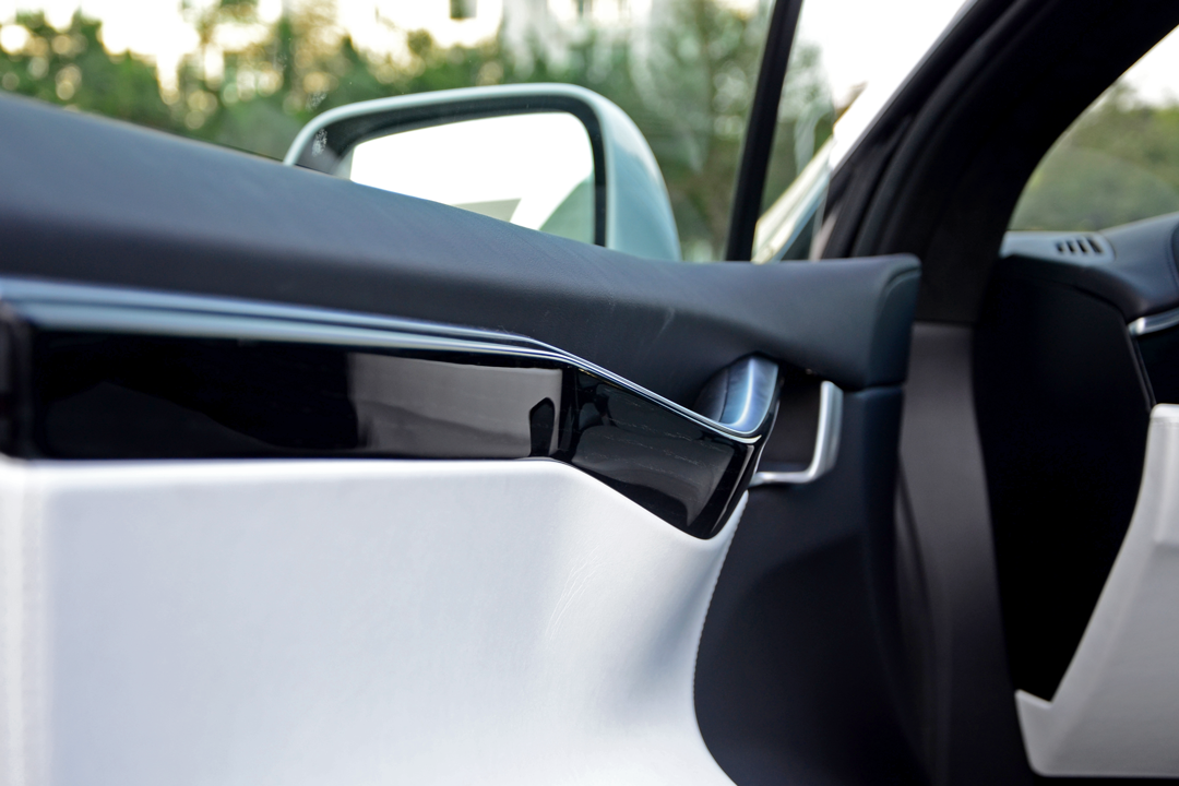 而特斯拉MODEL X的内饰更具特色,除了超大尺寸的中控显示屏之外,在储物格、门把手、座椅造型方面都能感受很强的设计感,甚至操作起来会让人有一些不适应。
