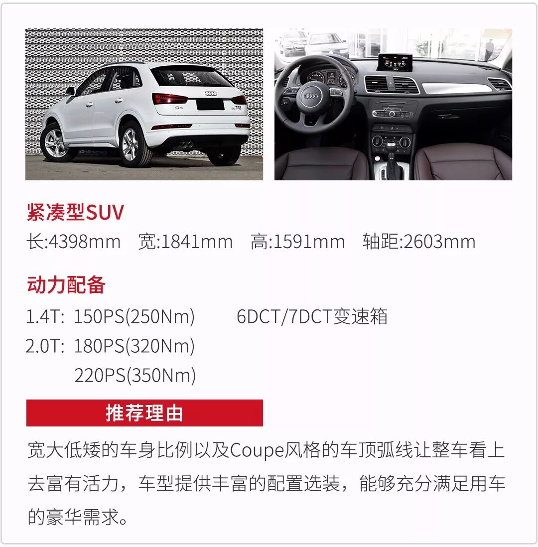奥迪早已在国人心目中树立起一个高端的品牌形象,同时也推出许多高品质的车型赢得了市场不错的口碑,奥迪Q3作为奥迪旗下相对入门的SUV,其主销还是1.4T车型,与之匹配的是6挡双离合变速箱。