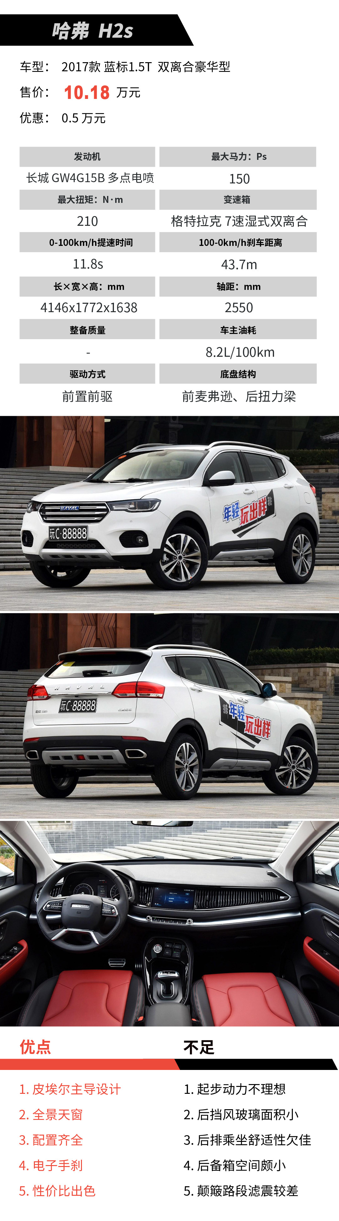 国际知名设计师的出手着实提升了哈弗系颜值,H2s便是实例。H2s各方面表现较均衡,只是追求外观设计而牺牲后挡风玻璃视野及后备箱空间的做法多少有失偏颇,风琴式空调出风口集满灰尘后也会让处女座抓狂。咳咳,教授是处女座……