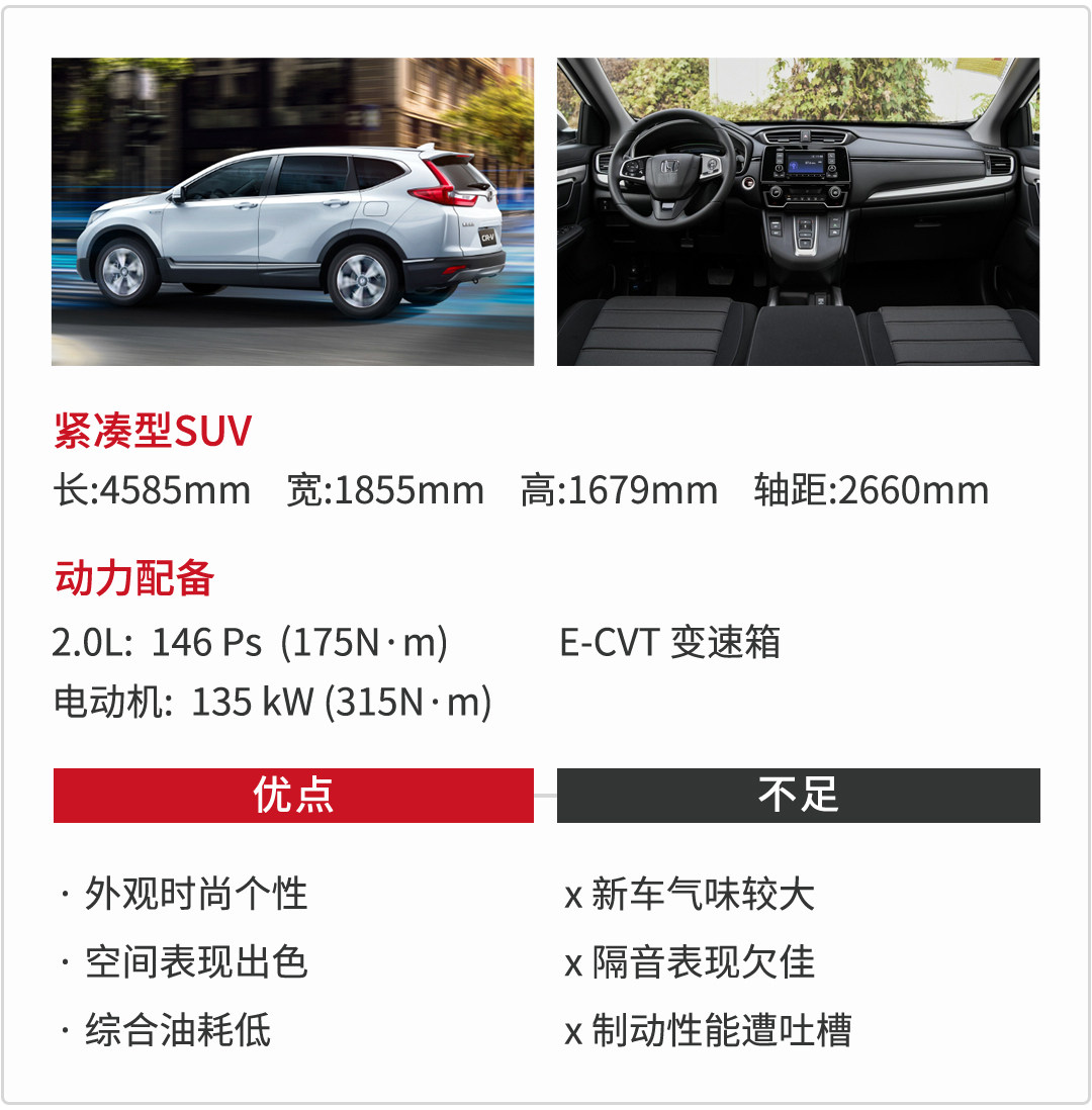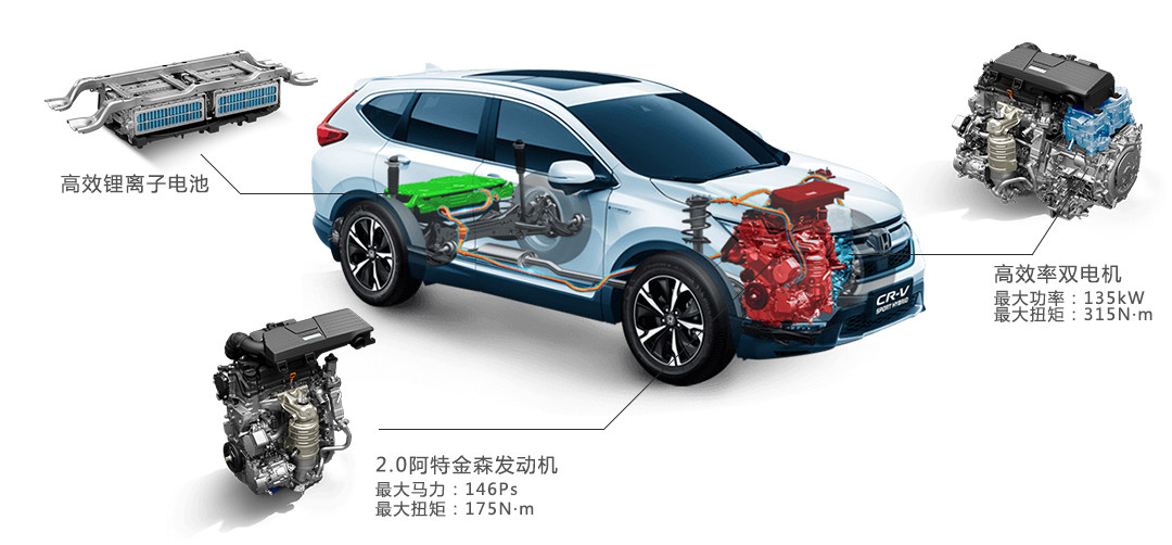 紧凑型SUV标杆CR-V混动车型使用的是本田i-MMD串联式混动系统,由一台2.0L 阿特金森发动机和双电机组成。
