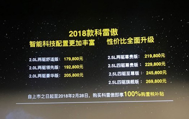 5.新款科雷傲正式上市,售17.98-26.98万。