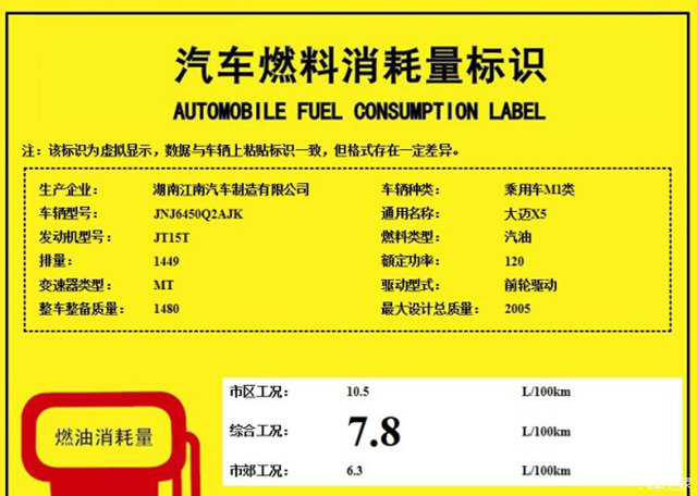 4.新凯越油耗标识曝光,将搭载1.0T/1.3L两款发动机。
