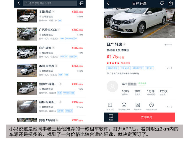 小冯这人说干就干,立马下了个网上租车的APP,就在那里刷啊刷啊,发现附近也有不少的车源,至于价钱嘛也在可接受的范围内。这货跟老陈一样挑剔,跟老婆俩人左挑右选,商量一番后终于选定了一台心怡的白色轩逸。