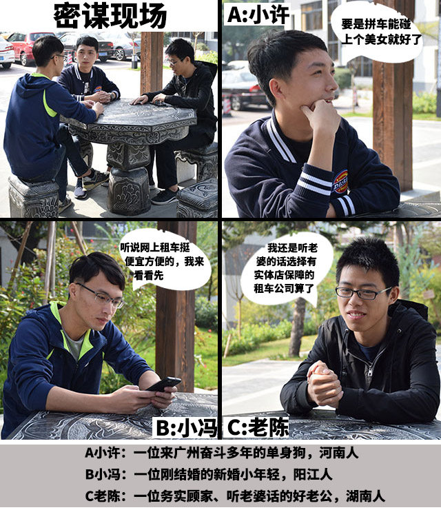 这仨货竟然敢光明正大的密谋自己的归家之路,还不把我喊上参谋参谋,真可谓过分!小许这个单身狗最后选择了拼车回家,而刚刚结婚成家,需要带上老婆的小冯则选择线上租车,至于拖家带口的老陈嘛,就选择了更为可靠的门店租车。至于后续怎么样嘛,那就随我一起looklook。