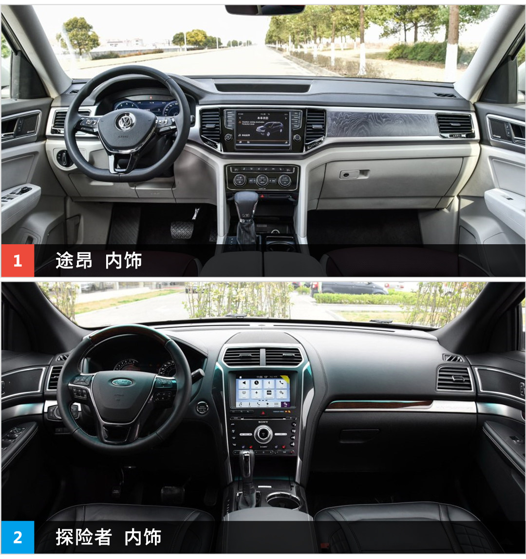 虽然在整体价格上探险者要比途昂贵很多,但其纯进口品质、多年成熟的口碑以及相当霸气的外观让不少消费者都念念不忘。而途昂则是国产的身份,却有一个进口车的价格,其整体做工用料和工艺水准却达不到这个价位该有的水准。所以即便是探险者整体车系都要比途昂贵出十来万,依然会有不少消费者在这两者之间纠结不定,那么今天就来对比一下这两个巨无霸到底谁好点?