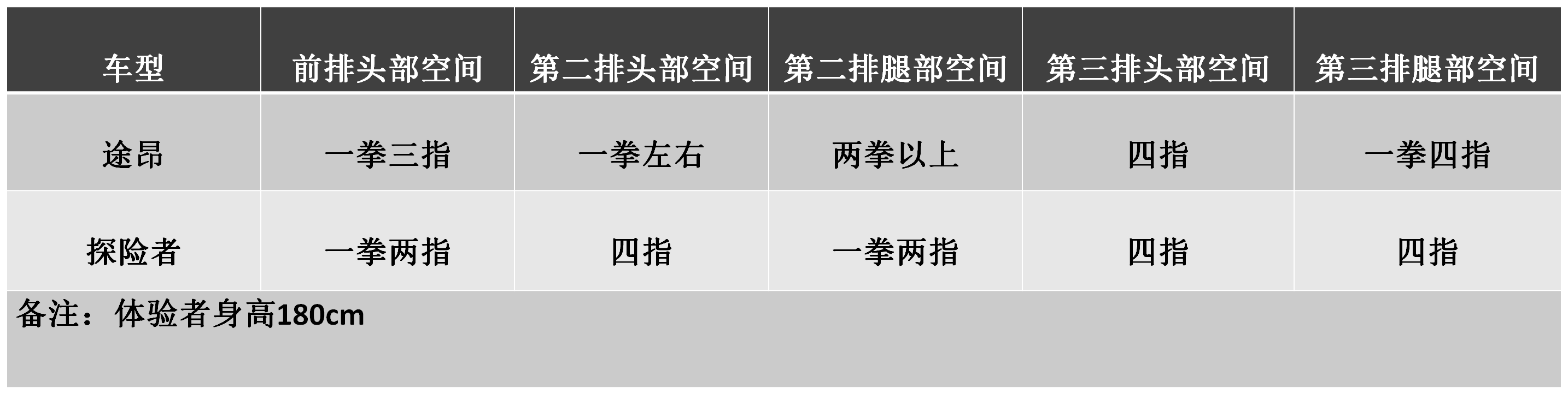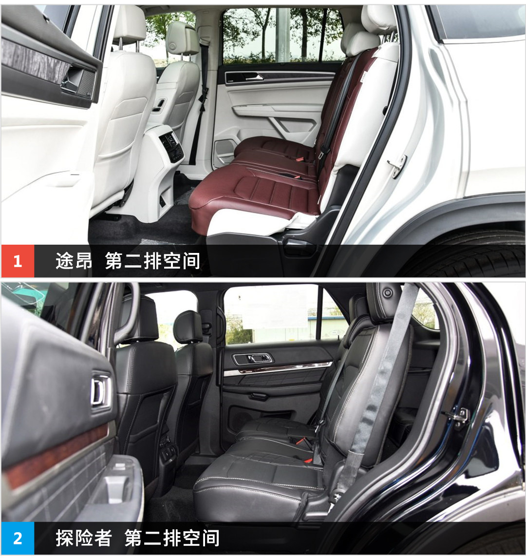 从数据以及实际体验便可以看出,途昂的整体车身尺寸以及轴距都要比探险者长,实际乘坐感受途昂也确实要比探险者优秀,但探险者的乘坐感受还是能让人满意的。而如果真的需要大空间来满足家人的乘坐感受,途昂无疑会更胜一筹,但如果从底盘质感以及静谧性的角度来看,空间处于下风的探险者反而挽回了不少优势,至于到底怎么选,还可以继续看看下面的配置部分。