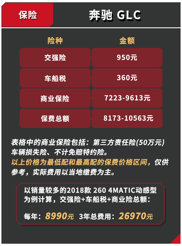统计下来,奔驰的星徽保养政策发挥了非常大的作用,一年的保养费用不足五千,总费用不足3万,可以说是比较理想的表现,很多非豪华合资中型SUV都在2万多点,作为豪华品牌老大哥的GLC跟其他非豪华车型并没有相差太多,正如本文开头说的,后期保养维护也是GLC的一大优势,卖得好也是必然的。
