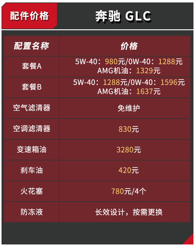 除了有着优秀的产品力,还有一个因素让GLC大卖,真是本文要给大家展示的,那就是售后保养,奔驰采用统一的保养套餐政策,“星徽保养菜单”涵盖绝大部分奔驰车型,在保养花费有着不小的优势,GLC表现如何?请看!