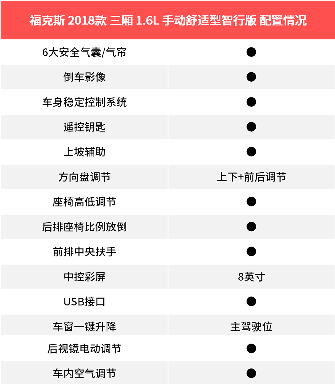 除此之外,福克斯其实也是一款很不错的入门级轿车。起码它在配置方面很厚道。11万多的低配车型就有6大气囊/气帘、车身稳定控制系统、倒车影像、上坡辅助,安全配置杠杠的。而且在11万左右的低配车型中能看到8英寸中控彩屏、后视镜电动调节更是惊喜满满。所以低配版的福克斯算是比较值得买的。