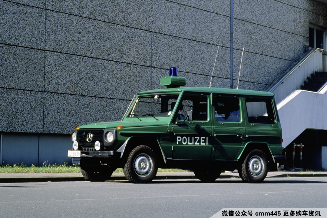 1979年,那时候的奔驰G-class是被称作G-wagon诞生,那时候是为了满足伊朗军方的需求,底盘代号W460的它有着2400mm的短轴距版以及2850mm的长轴距版,它们分别有着双门敞篷、双门硬顶以及四门硬顶版本。一眼看出它有着那个时候军工风格的硬朗外观,平直方正的线条遍布全车,似乎全车是用尺子量绘出来。