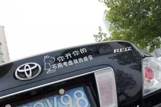 如果想贴上个性车贴,不能超过车体单幅面积20%!选择幽默、调侃性质的车贴以不影响他人行车为前提。
