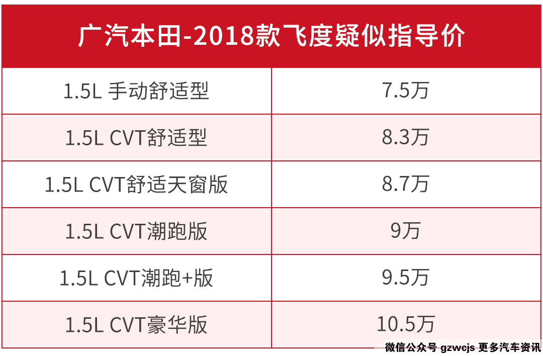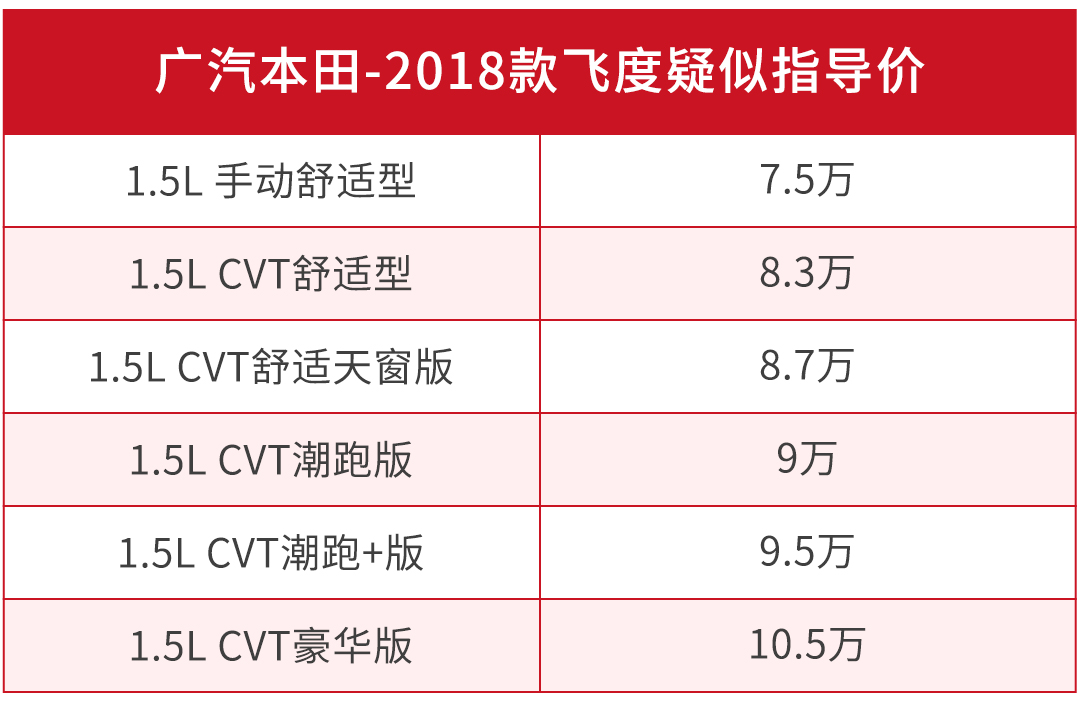 新款飞度车将于1月11日正式上市,但是饥渴的媒体老湿们早就迫不及待了。日前,又有媒体从广汽本田经销商处获取到了新款飞度车型的配置参数表。再加上前阵子被曝光的售价信息,新飞度算是曝光得差不多了。