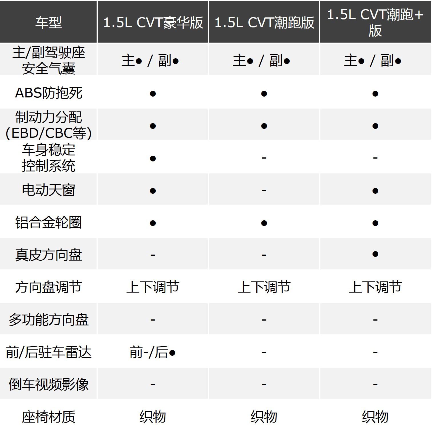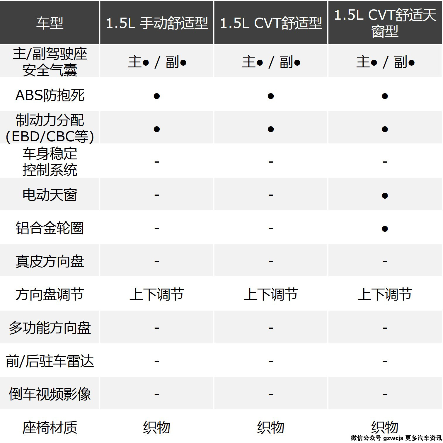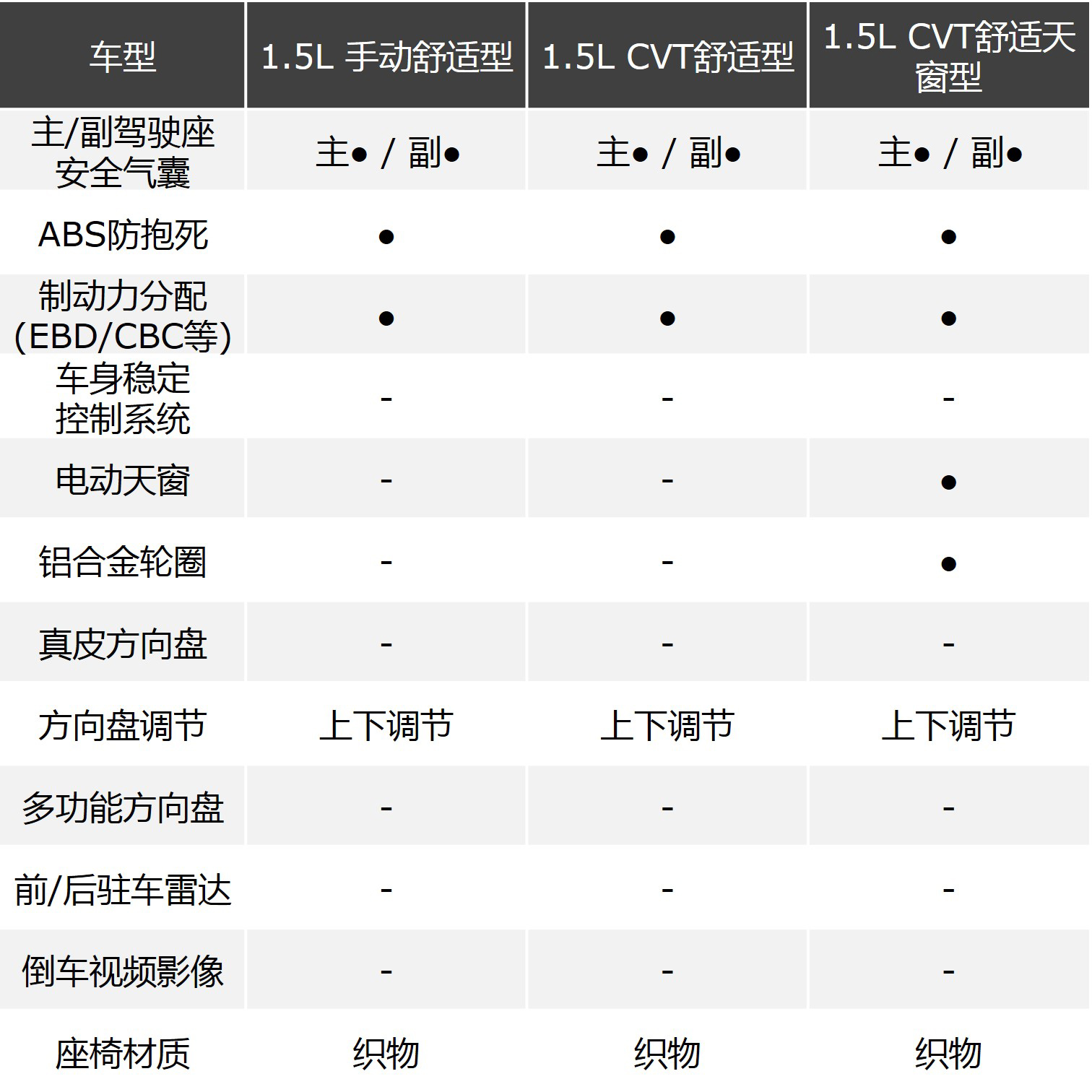 内部配置方面,新车全系搭载织物座椅、手动空调、双USB接口,全系都不配备中控大屏。而高级织物座椅、后排魔术座椅、一键启动、自动启停和4个扬声器等配置要到高配或是顶配车型才能拥有。