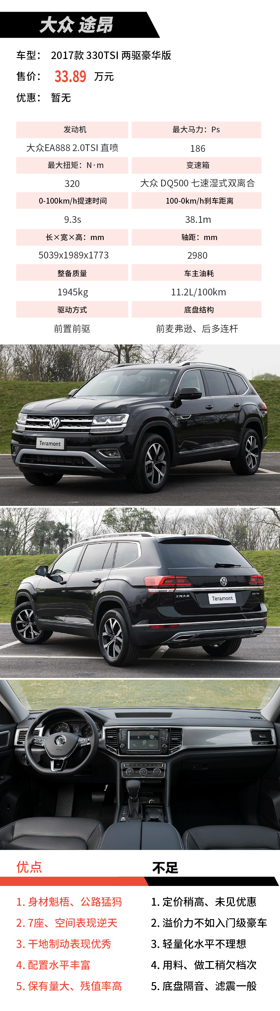 魁梧身段俨然一公路猛犸的存在,即便东北大汉在途昂边上也显得渺小。或许出于空间考量和无需过分注重车身配重,途昂并未选用MLB纵置平台打造。2.0TSI低功率被阉割至186Ps,带动近2吨重的身躯稍显力不从心,搭载的城市四驱系统差点意思。MQB平台又咋了?人家够大,国人喜欢。