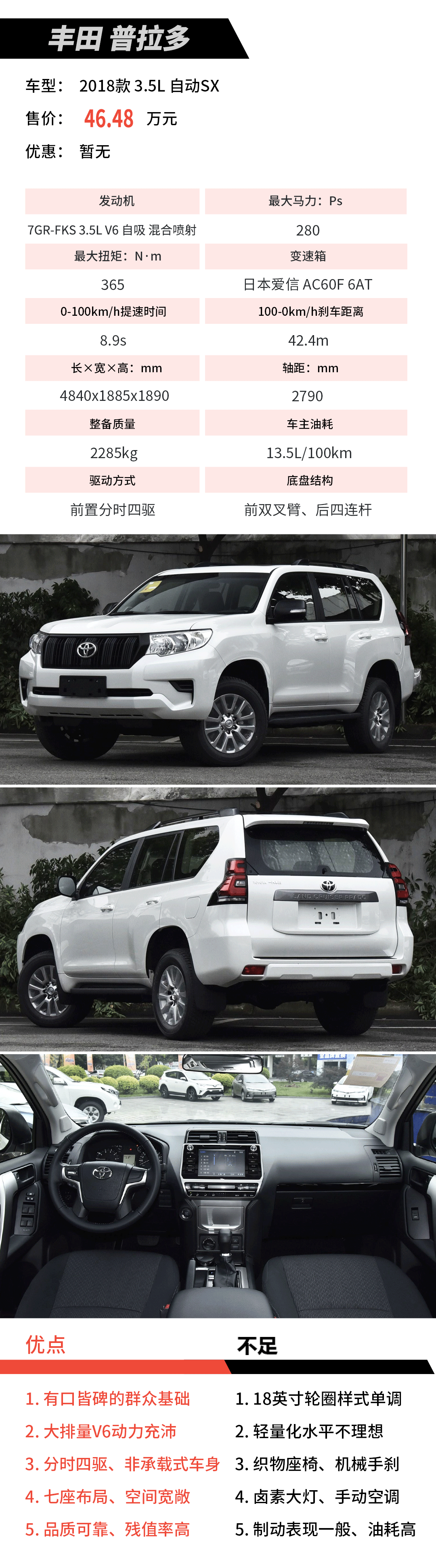 教授称新款普拉多为妥协后的产物,此话怎讲?国产普拉多目前只推出3.5L版本车型、全系车型的全时四驱改为分时四驱(为满足CAFC法规的无奈之举)、顶配车型取消后桥机械式差速锁,买中规版的消费者只能接受事实。越野能力没过多缺失,但日常驾驶面对复杂路况的表现较老款退步。