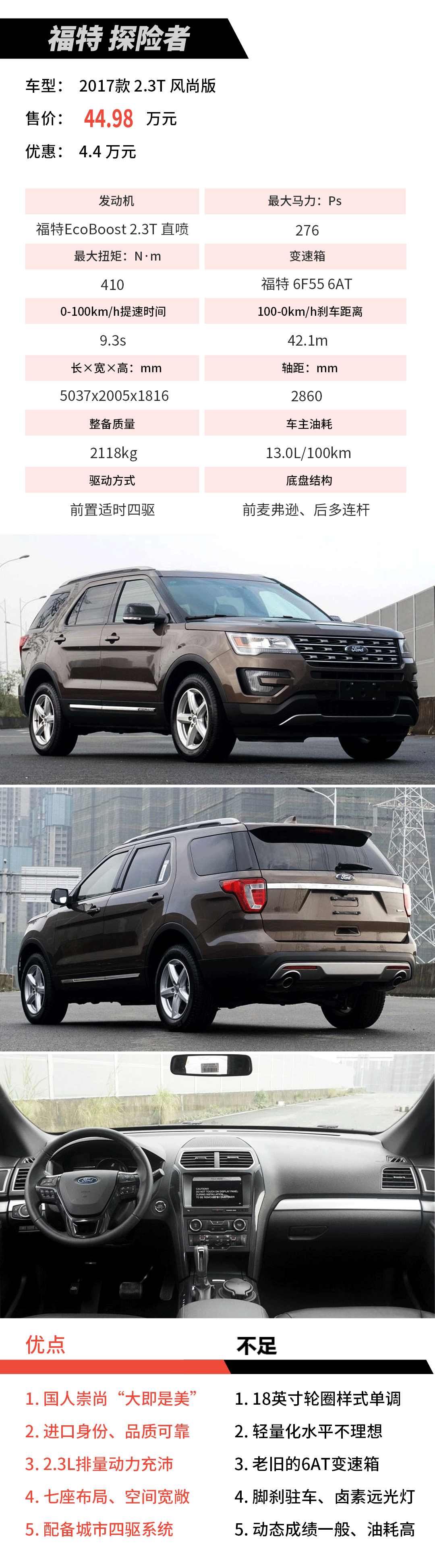 典型美式肌肉大块头设计,让人一看便知其非等闲之辈,从引来长安CX70临摹便能窥探一二。选用全新2.3T发动机替代3.5L自吸发动机,前者在动力和油耗方面都优于后者,且平顺性令人满意,假若有六缸情节建议加预算上3.5T V6版本。此外,偏硬的悬架舒适性略逊主流城市SUV。