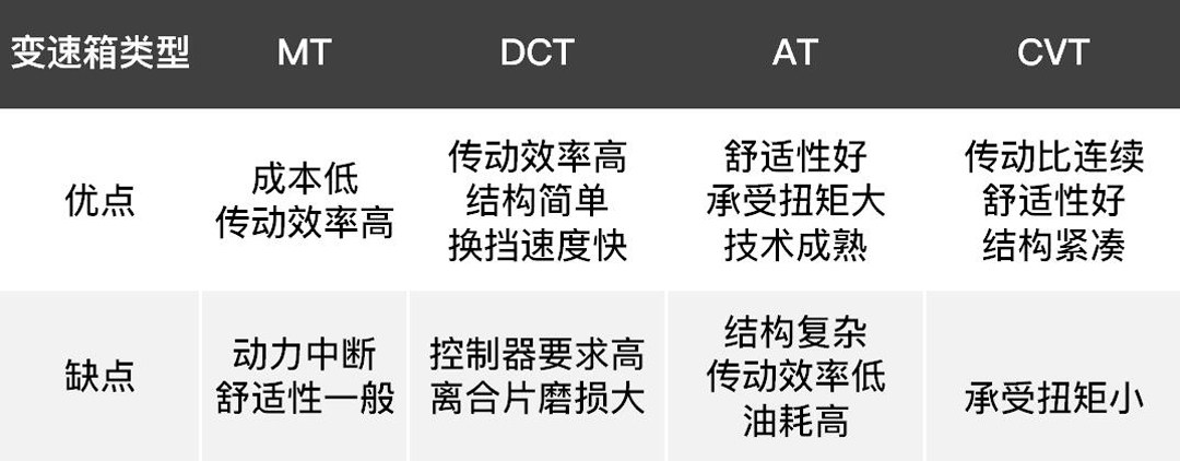 总体来看,目前自动变速器的稳定性排序为:AT>CVT>湿式双离合>干式双离合。