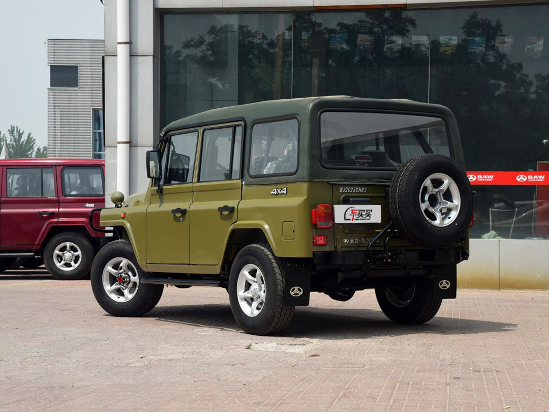 BJ212搭载一台排量为2.4L直列四缸汽油发动机,四轮驱动,前后鼓式刹车,匹配3速手动变速箱,最大功率55Kw。