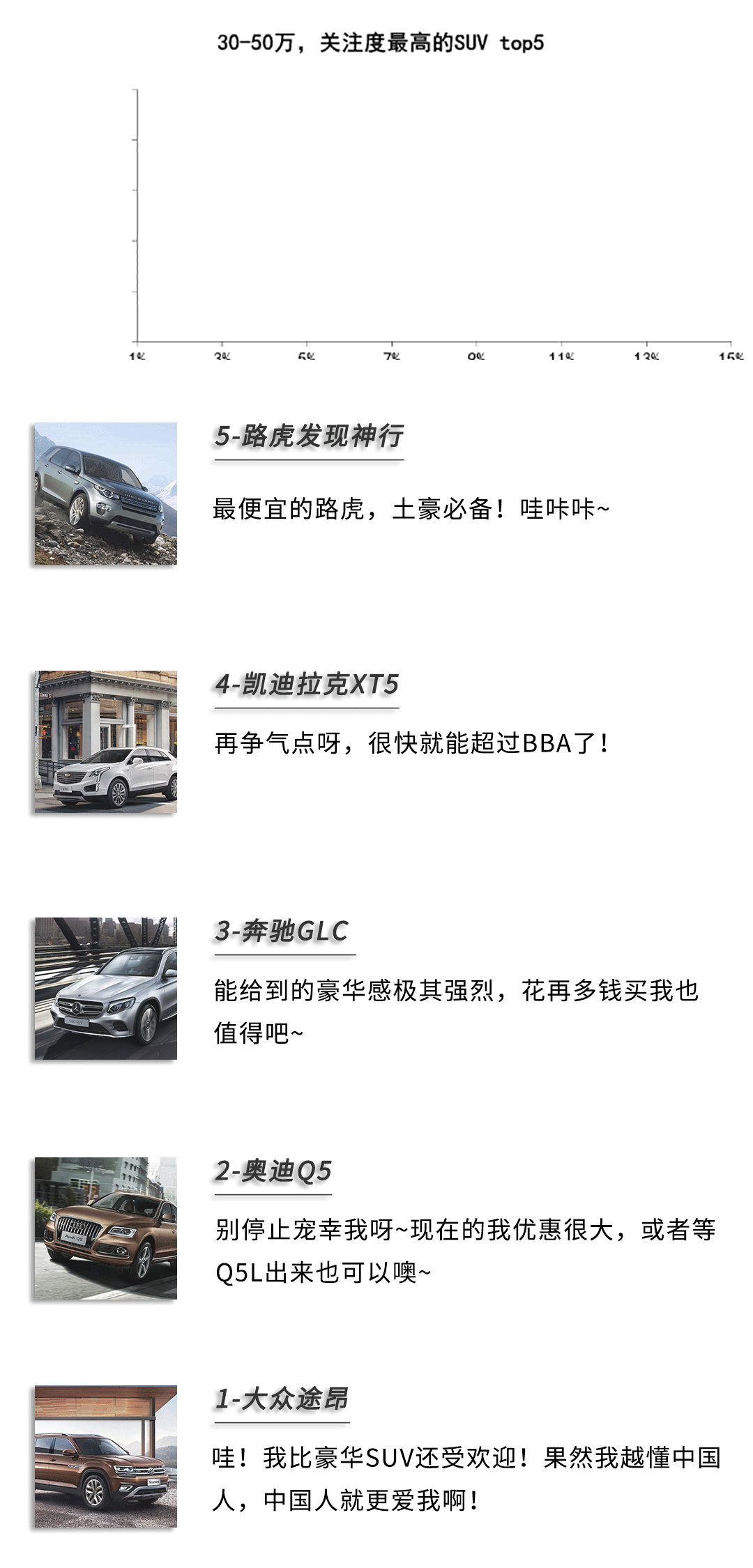 又到大众途昂PK各大豪华品牌SUV的时间了。这个月,途昂继续以微弱的领先优势成为该领域中关注度最高的SUV。但是不知道途昂好景会有多长呢?今年,奥迪Q5L要来了,而途昂是17年的新车,估计18年并不会多大的改变。稍微脑补一下就可想到竞争会有多激烈了,期待!期待!