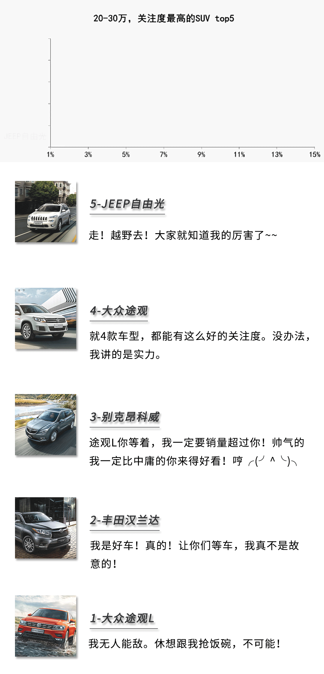 这个领域的热门SUV,十有八九……噢不,应该是十有十 都是合资主流SUV。而大众品牌在这价格区间里,无论是轿车还是SUV都有着不错的造诣。SUV这边就是途观L啦,尺寸够大、品质不赖、品牌溢价能力强。而其他主流合资SUV凭着不错的口碑和优惠,关注度也不低。
