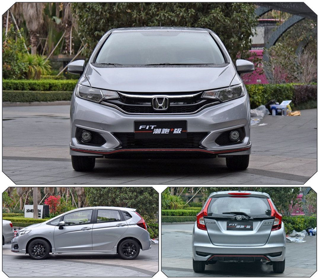 而新增的潮跑版和潮跑+版两款新车才是这次改款的最大亮点,在普通版车型的基础上增加了红黑双色的前唇、侧裙、后扩散器,并采用了外露式排气和黑色铝合金轮圈等,这样的造型其实就是我们常见的改装飞度,只是两款车型本田已经帮你改好了,效果真心不错。