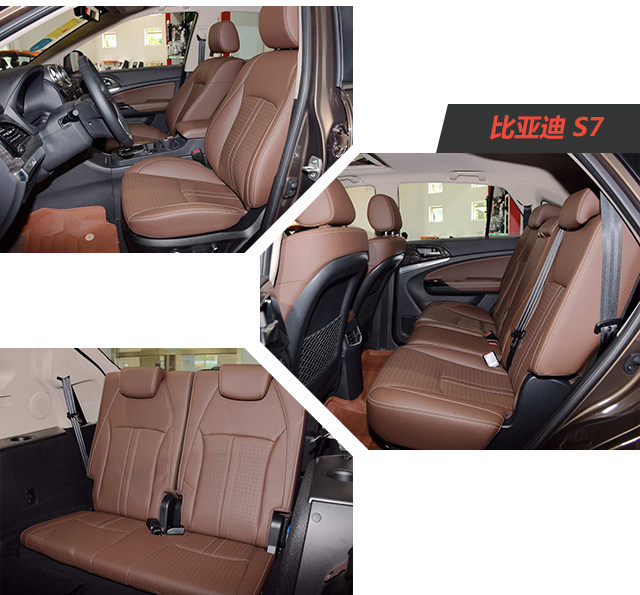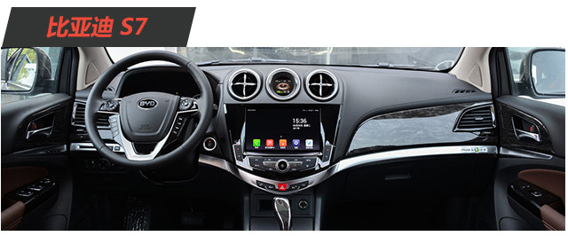 比亚迪S7的内饰算中规中矩,用料和工艺比前两款好一点,中控屏没有采用悬浮式,两三年前那时候还没流行,不过比较少见的是两个出风口之间还有一块小屏,可以显示南北向、PM2.5、海拔等信息,全系标配皮质方向盘和仿皮座椅,并且高低配的中控材料差异不大。