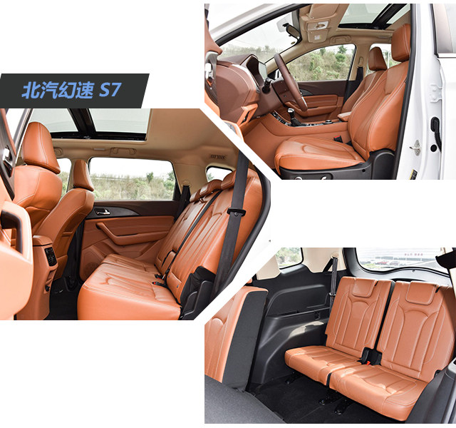 而幻速S7的空间实用性同样非常强,车身高度达到1.77米,并且第三排头部有掏空设计,并且第二排前后/角度可调,所以第三排腿部可头部空间都是很可观的,在三款车当中应该算是最好的,只要第二排稍作调整,乘坐一米七五左右的成年人没有太大问题。