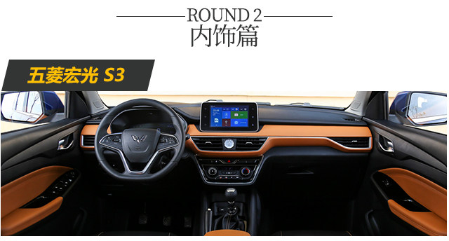 五菱宏光S3的内饰非常简约整洁,各层区分清晰,方向盘材料目前全系都没有皮质,不过好在是软质的,手感还不错,采用了悬浮式中控屏,推荐的手动豪华版中控材料用上不同色的皮革包裹,视觉体验很不错,低配的话是硬塑料,观感一般般,座椅材料方面除了最低配其余都是仿皮。