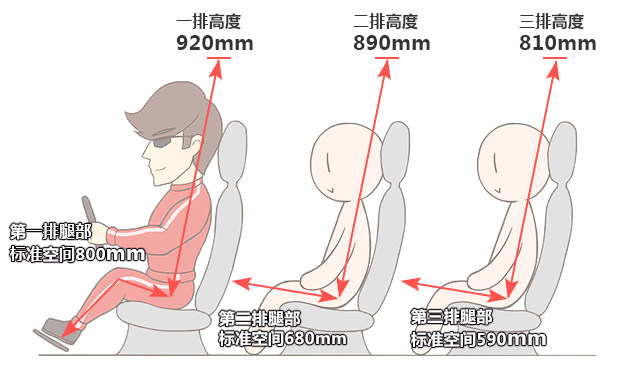 相比之下比亚迪S7的车身高度在三款车当中是最低的,车尾不够翘,所以留给第三排的头部空间并不多,腿部空间比前两款车少一点,不过第二排也可以前后调节,能为第三排腾出一点空间,作为临时使用没问题,总体来说比亚迪S7的第三排实用性还是有的,但是不如前两位选手。(注:以上数据测量存在误差,仅供参考)