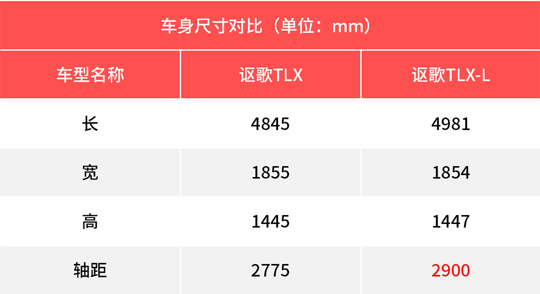 讴歌TLX-L相较于以往进口的TLX来说在轴距加长的力度上就显得非常大了,TLX-L比TLX的轴距长了125mm;2900mm的轴距与宝马3系,奔驰C级等主流竞争对手的数据差别仅在毫厘之间。除此之外,TLX-L有着4981mm的车身长度,这让它的气势更像一台中大型行政级轿车。