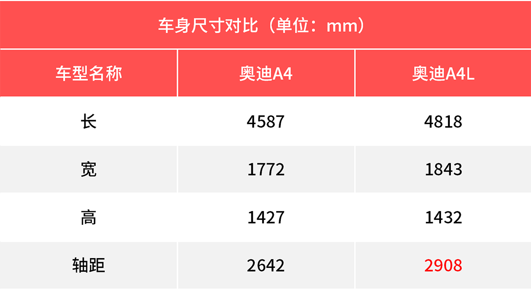 奥迪A4L的轴距加长历史可就有些悠久了,首款国产化的奥迪A4L于2008年的年末在广州车展首发,当时所公布的数据是车身长度增加117mm,轴距增加了166mm;那时的A4L轴距为2808mm;而后的A4L在不断地增加轴距加长的力度,直至现款最新的MLB平台下的2908mm,所以说A4L在长轴的修炼中非常有造诣。