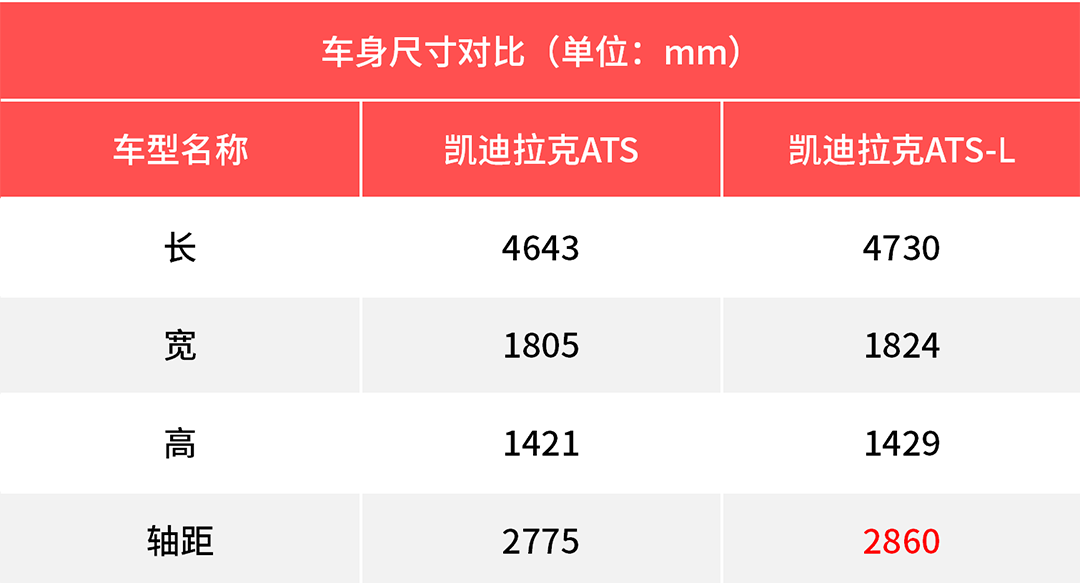 凯迪拉克ATS-L是ATS的长轴版,相较于短轴的ATS来说,ATS-L的轴距拉长了85mm;数据并不算小,且全部是为了后排的腿部空间而准备,不过实际乘坐表现并不算出色,由于ATS-L的车身高度较低,而且内饰氛围也偏向压抑,所以在乘坐空间的表现上,ATS-L是一个及格的水平,但并不优秀。
