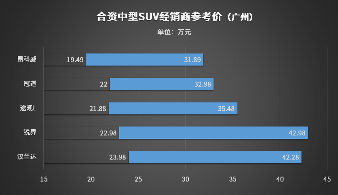 小雅说数据:以广州经销商为例,昂科威和途观L存在一定的终端优惠,前者更是高达2-3万元;2018款锐界基本上是没有优惠的,至于汉兰达与冠道嘛,不加价就表示很感动了。我们可以看出昂科威的售价在五车中占不小优势。