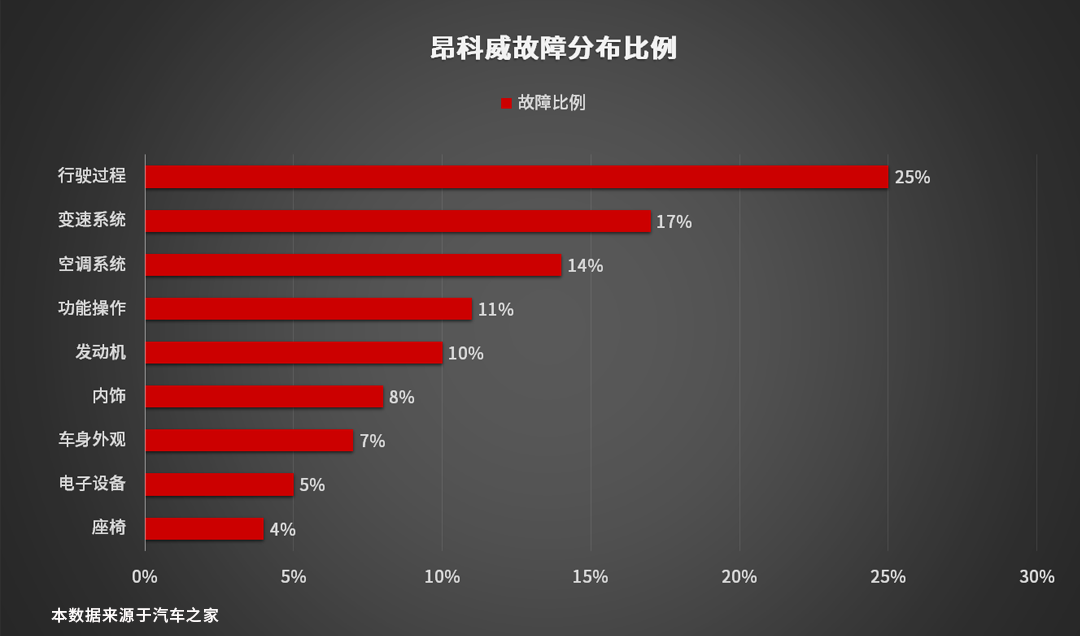 小雅说数据:昂科威的异响主要存在于转向、刹车以及变速箱换挡等方面,值得注意的是空调系统的故障比例比其它车型要大,制冷效果有待加强。
