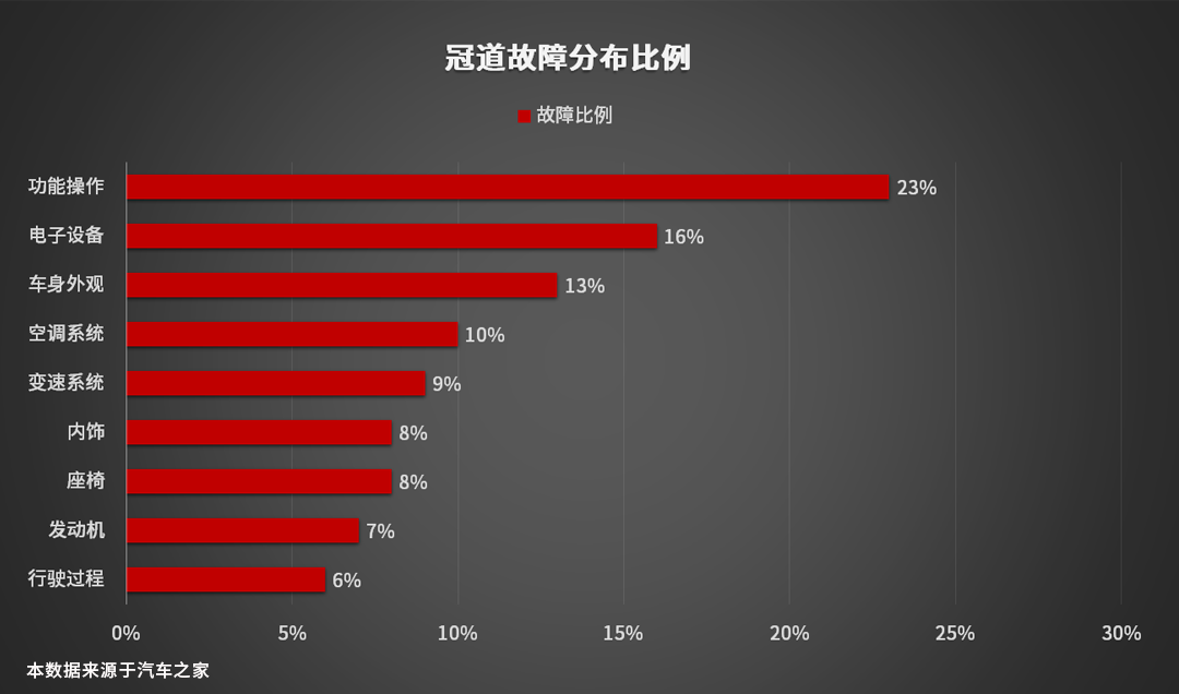 小雅说数据:冠道的故障分布比例最高的竟然是在功能操作方面,这有点令人费解,问题主要出现在胎压监测系统与导航系统上。