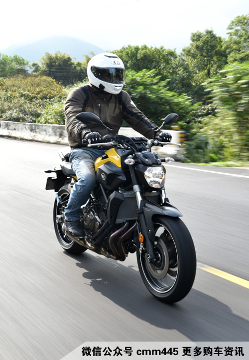 试驾活动刚开始,一跨上车,笔者光是牵动车辆就发现MT-07车体重量明显轻了些。182公斤轻量化车身重量加上1400mm短轴距,很容易让人忘记自己在骑一台689c.c.的双缸车。原来,街车也可以骑得这么轻松。车体低重心的配置、加上新设定的骑士三角,轻快的操控感让我个人更加确定MT-07是一台有丰富骑乘乐趣的车款。