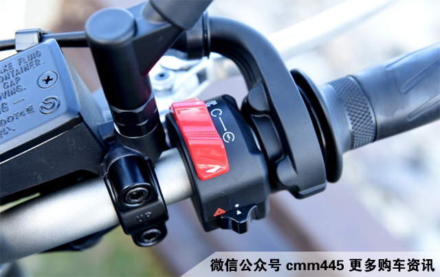 右边把手开关,红色按钮整合熄火开关、启动按钮,实际操作起来相当顺手,整合按钮的方式也让开关总成的功能更简洁,操作上十分直觉。另外,底下有警示灯号可切换。